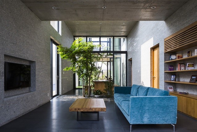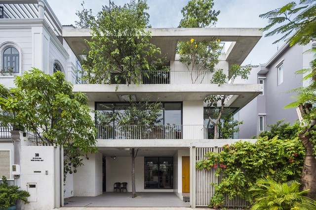 Ngôi nhà được thiết kế cho một gia đình người Việt điển hình với ba thế hệ. Mỗi chức năng riêng được đặt trong các khối bê tông và được xếp chồng lên nhau một cách ngẫu nhiên. Các sàn bê tông ngang từng tầng là các sânđể trồng cây. Những không gian bán ngoài trời này là phòng khách và nhà ăn, chính là không gian cho mọi người quây quần.