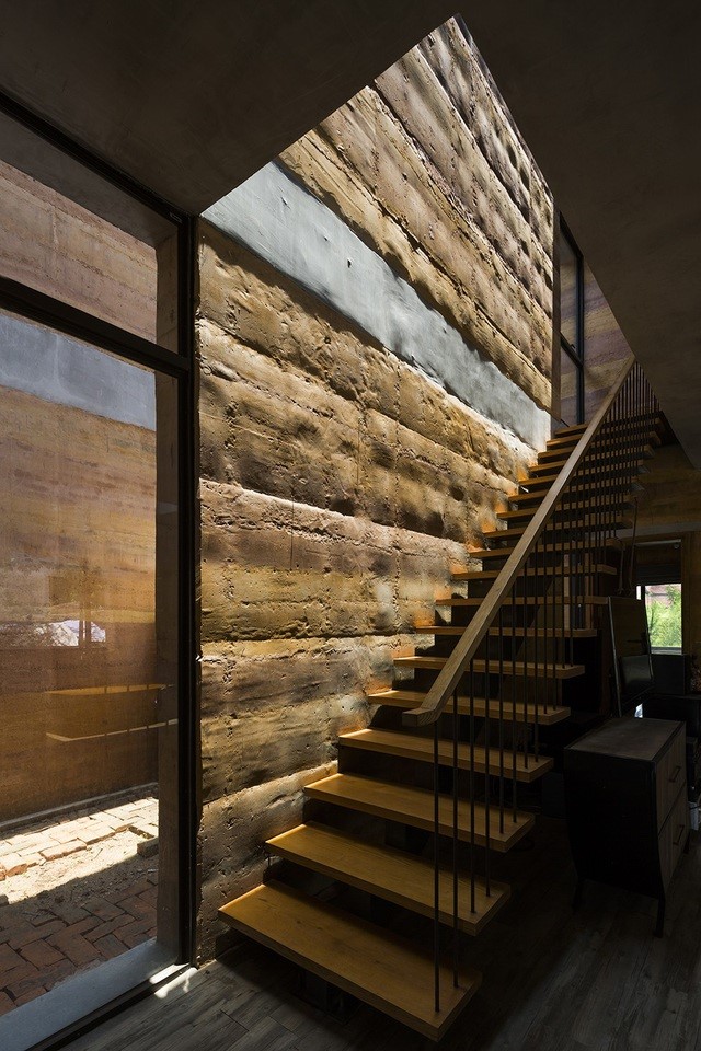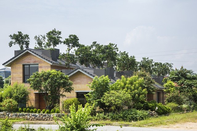 Nhà được thiết kế mái dốc, phù hợp với khí hậu nhiệt đới gió mùa của Việt Nam. Tường đất được xây dày 350mm, xây cao 2 tầng, không có cột bê-tông. Nhiều loại đất tạo ra được các vân màu đất khác nhau, khiến công trình có một bề ngoài mới lạ, khác biệt. Đất sau khi được lấy về, được sàng lọc, xay nhỏ, sau đó được trộn thêm với xi măng, phụ gia rồi được cho vào hệ ván cốp pha và đầm chặt. Kết quả được những bức tường đất mịn màng, thẩm mỹ đẹp, khả năng chịu lực cao.