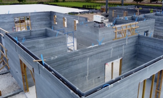 Tòa nhà in 3D rộng gần 940 m2 ở Florida được xây bằng máy in 3D, có thể chịu điều kiện thời tiết khắc nghiệt như nắng nóng cực hạn và mưa bão đã hoàn thành cấu trúc chính của tòa nhà.